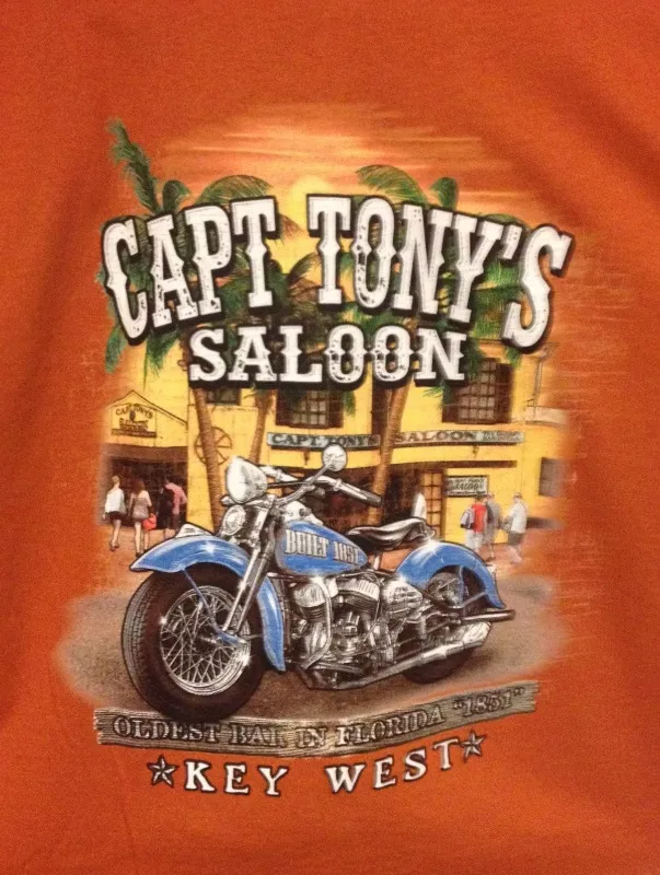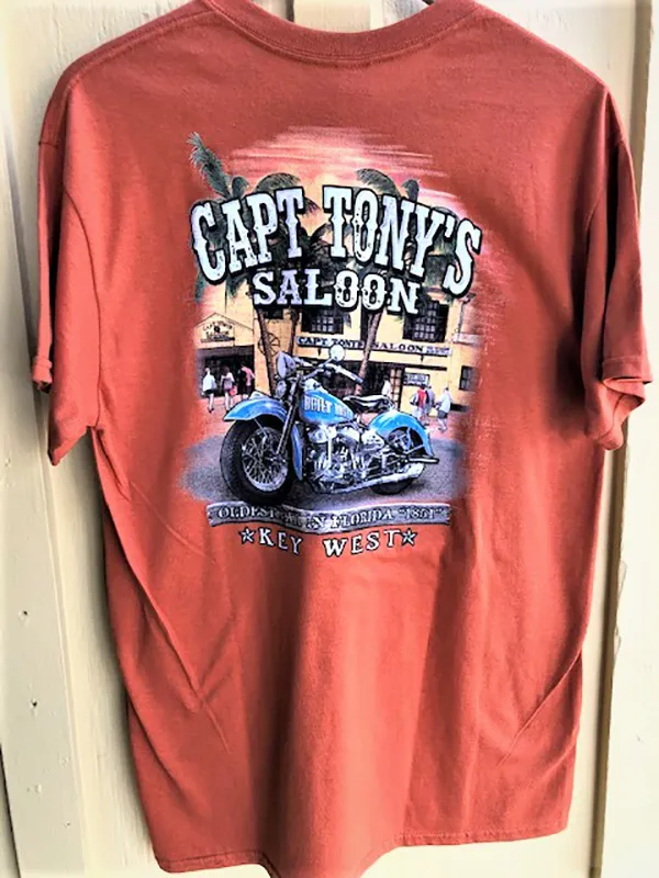 New Motorcycle T-Shirt Capt Tony’s Saloon T-shirt in a tough Charcoal color – Ride in Style!