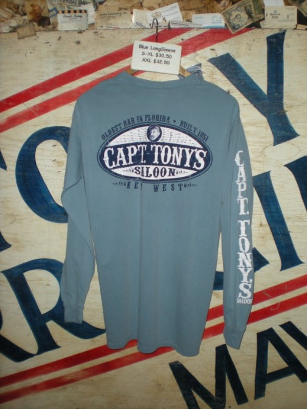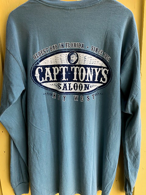 Vintage Oval Logo centered below the “Oldest Bar in Florida – Since 1851.” One of the Saloon’s most popular designs, with “Captain Tony’s Saloon” down the sleeve made with 100% quality cotton.